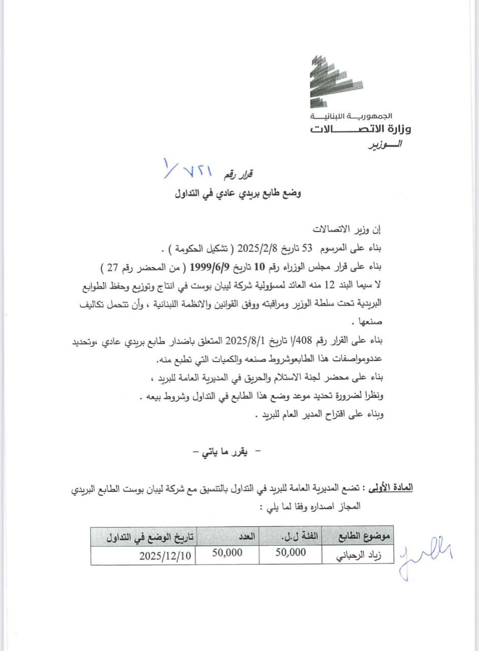 وبهذه الخطوة، تكرّم وزارة الاتّصالات أحد أبرز رموز الإبداع اللبناني، ليُضاف الطّابع الجديد إلى سلسلة الإصدارات التي توثّق الرموز الفنيّة في لبنان.