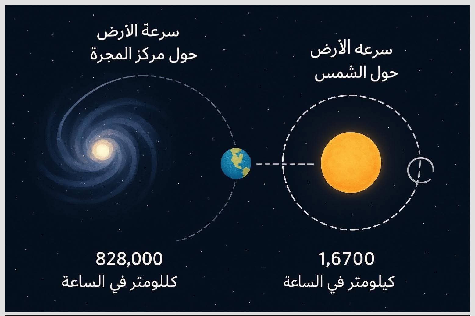 وعلى الرغم من هذه السرعة الهائلة، لا نشعر بأي حركة. والسبب في ذلك أن كل ما يحيط بنا يتحرك معًا بالسرعة نفسها: الأرض، والغلاف الجوي، بل والنظام الشمسي بأكمله. وفي غياب مرجع ثابت نقيس بالنسبة إليه هذه الحركة، يبدو لنا الكون ساكنًا، بينما نحن في الحقيقة نندفع عبره في رحلة كونية لا تتوقف.
