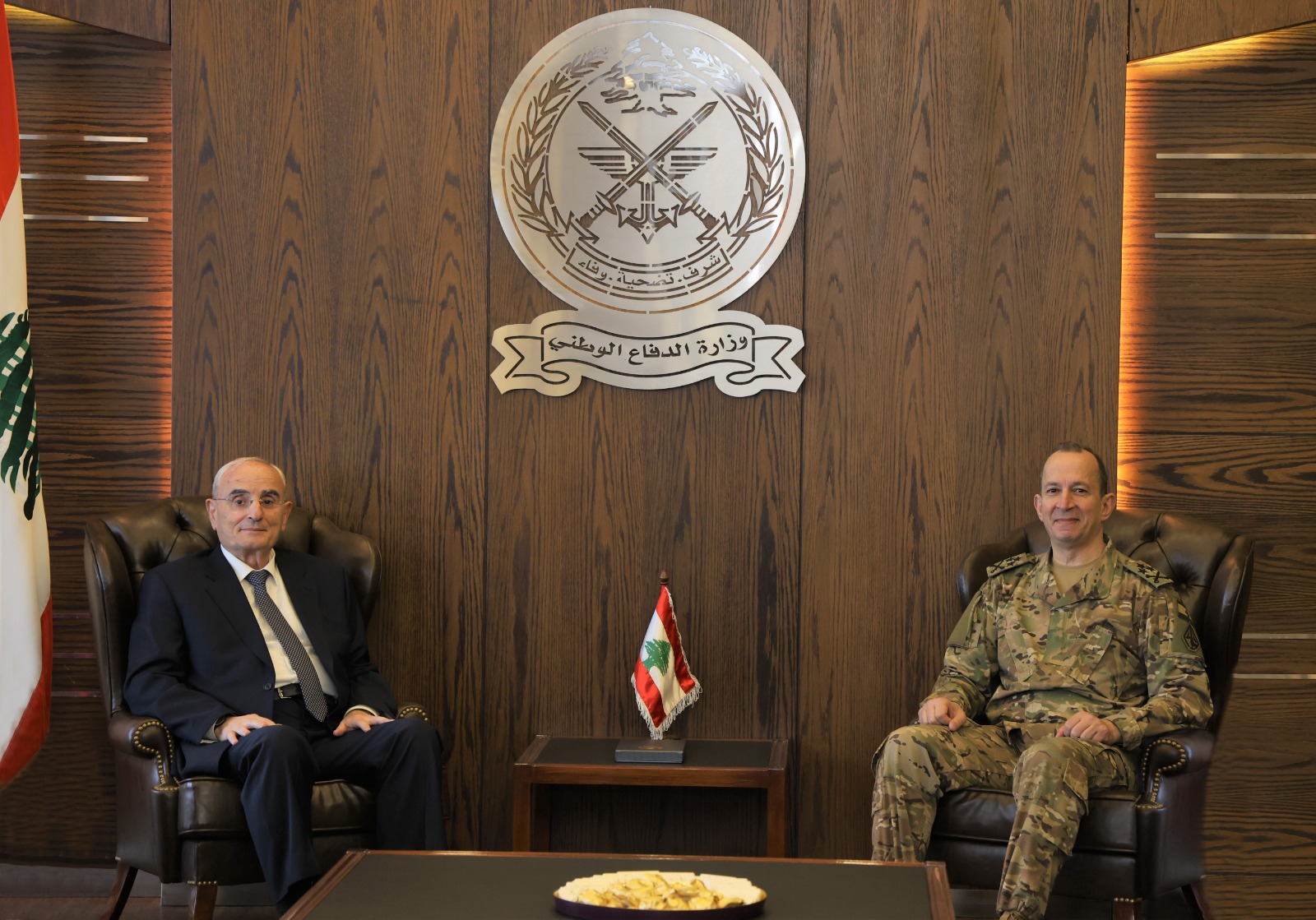 استقبل وزير الدفاع الوطني اللواء ميشال منسى في مكتبه في اليرزة اليوم قائد الجيش العماد رودولف هيكل، يرافقه أعضاء المجلس العسكري ووفد من كبار ضباط الجيش اللبناني، في زيارة معايدة. وتمّ خلال اللقاء عرض لسير العمل في المؤسسة العسكرية والتحديات القائمة.
