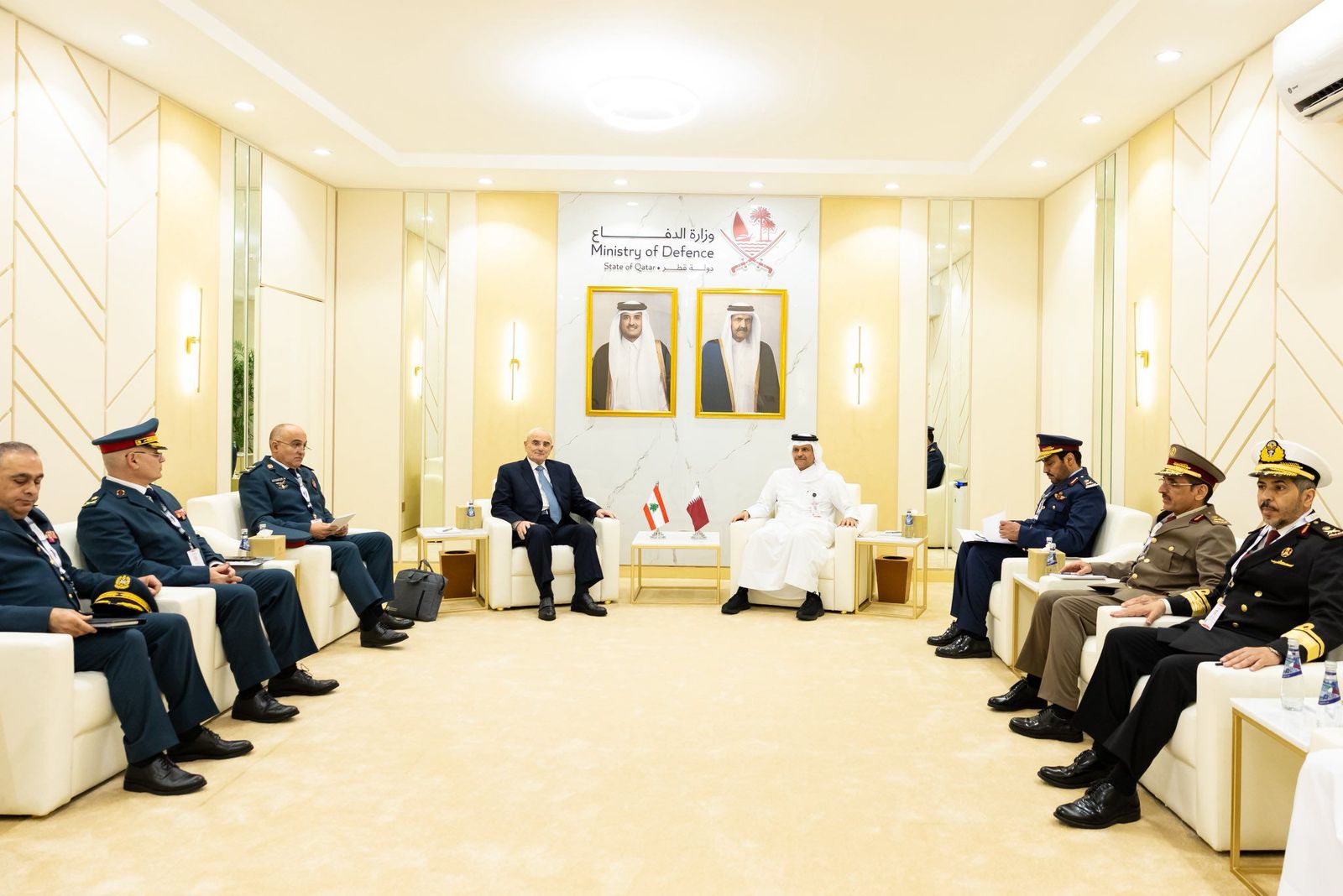 في إطار مشاركته على رأس وفدٍ عسكري في معرض الدوحة الدولي للدفاع البحري (DIMDEX 2026)، التقى وزير الدفاع الوطني اللواء ميشال منسى صاحب السمو الشيخ تميم بن حمد آل ثاني، أمير دولة قطر والقائد الأعلى للقوات المسلحة القطرية، كما التقى عددًا من كبار المسؤولين المشاركين في المعرض، ومن بينهم وزير الدفاع العراقي ثابت محمد سعيد العباسي، ورئيس أركان القوات المسلحة القطرية الفريق الركن جاسم بن محمد المناعي، والفريق أحمد خليفة رئيس أركان حرب القوات المسلحة المصرية.