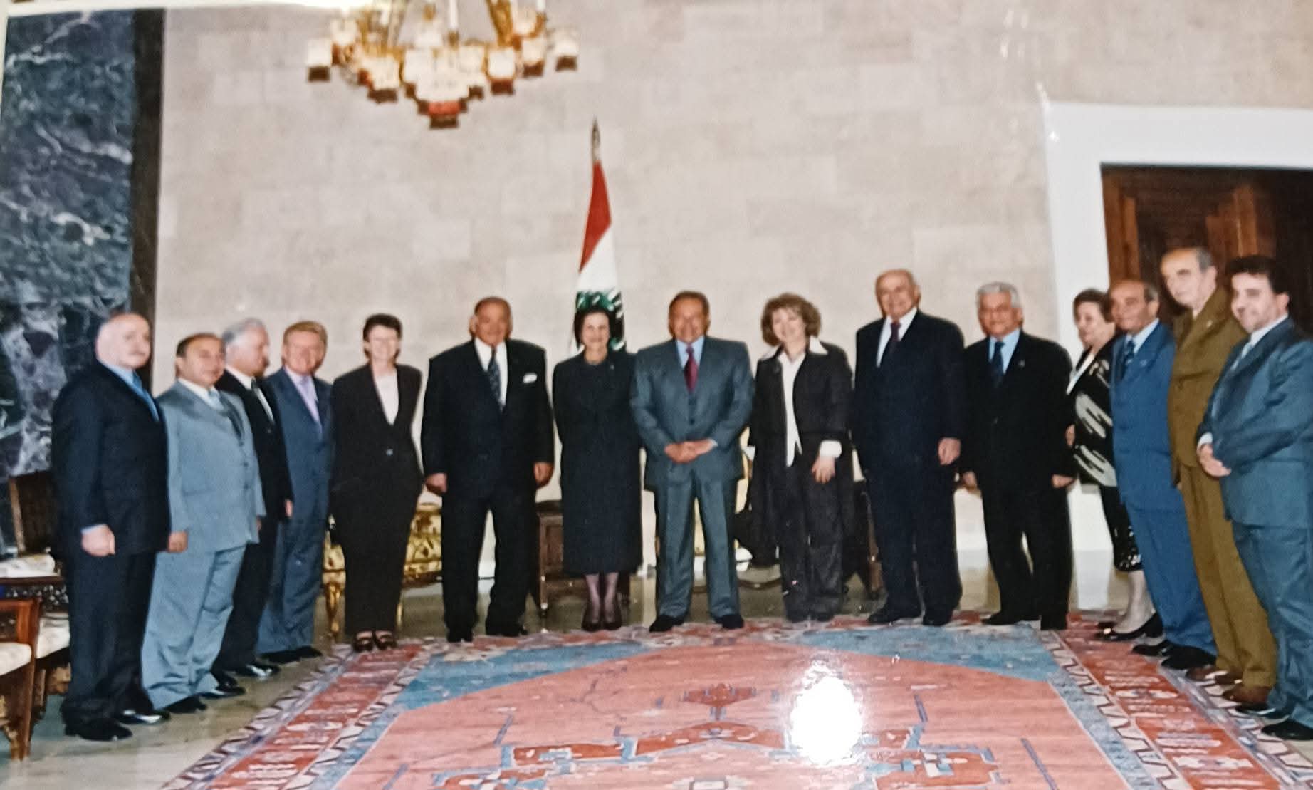 وفي اليوم التالي من حفل التكريم، استقبلنا الرئيس اميل لحود  في القصر الجمهوري في بعبدا ضمن وفد كبير ضم رئيسة ديوان أهل القلم والأعضاء برفقة الحاكمة وزوجها والوفد المرافق