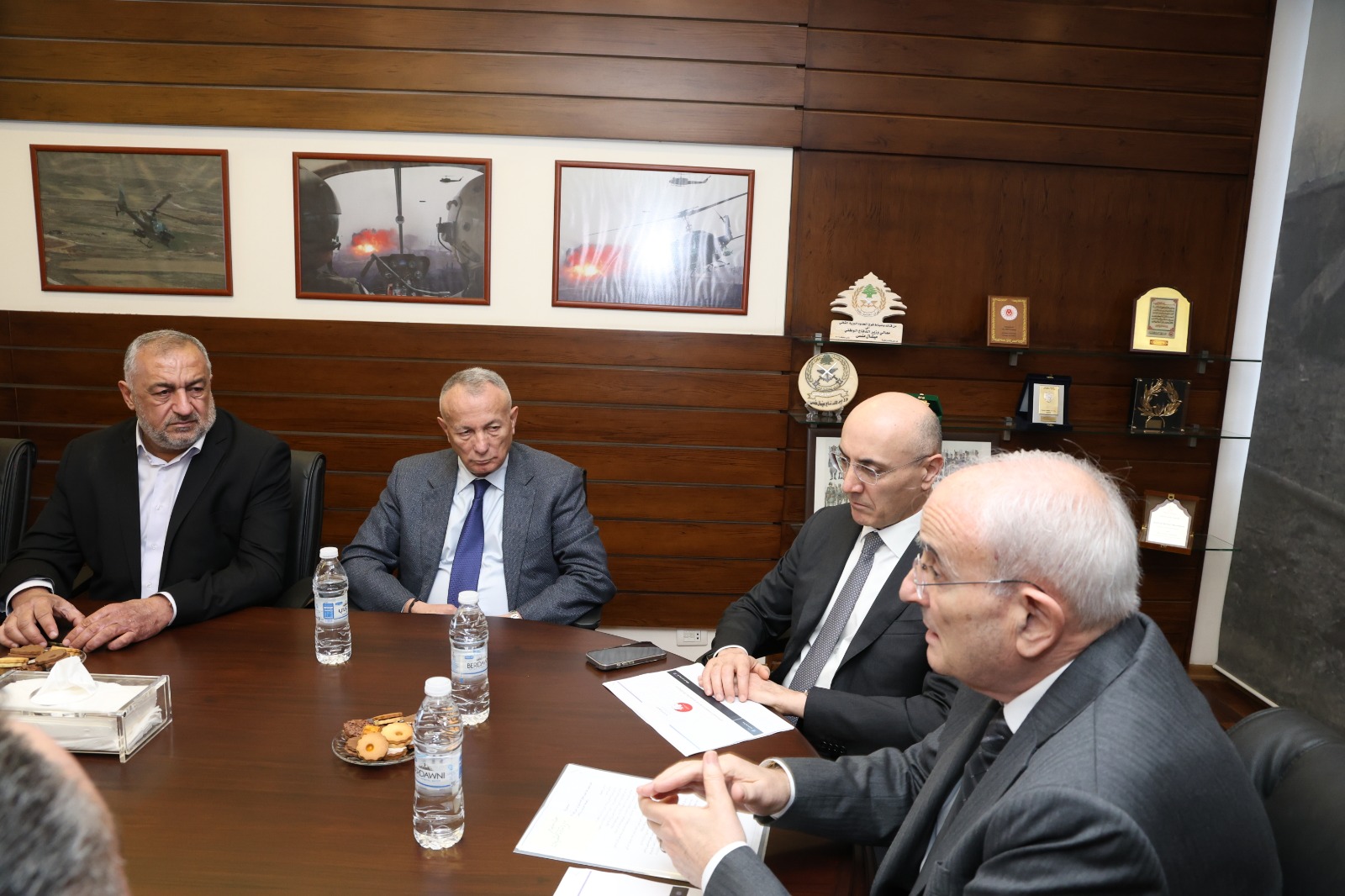 استقبل وزير الدفاع الوطني اللواء ميشال منسى في مكتبه في اليرزة اليوم وزير الداخلية والبلديات العميد أحمد الحجار، نائب حاكم مصرف لبنان الدكتور مكرم بو نصّار، النائب السابق شامل روكز، العميد المتقاعد بسام ياسين، وعددًا من الضباط من الجيش اللبناني وقوى الأمن الداخلي المختصّين في الشؤون المالية والإدارية المرتبطة برواتب العسكريين، في اجتماعٍ تحضيري للجلسة المرتقبة المخصّصة لبحث سبل تحسين رواتب العسكريين من مختلف الأجهزة الأمنية، في الخدمة الفعلية والمتقاعدين. وجرى خلال اللقاء عرضٌ مفصّل للمقترحات المطروحة والخيارات الممكنة لمعالجة الأوضاع المعيشية الصعبة التي يواجهها العسكريون في ظل الظروف الاقتصادية الراهنة.