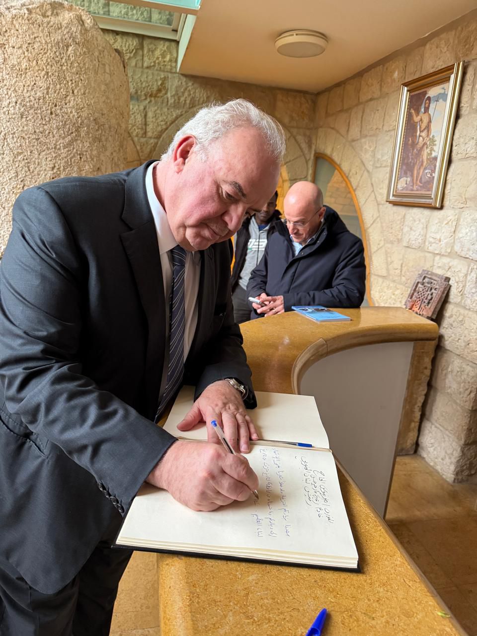 وكتب الحاج في السجل الذهبي:”سعدنا بهذه الزيارة المباركة، وشعرنا بفخر الانتماء إلى هذا الصرح العريق، لما لمسناه من أمانةٍ في حفظ تاريخٍ مُشرقٍ من تاريخ لبنان العظيم”.