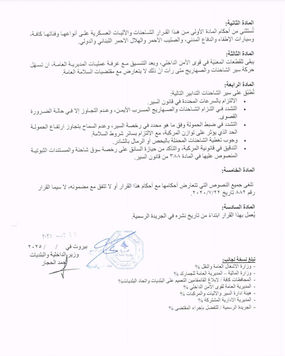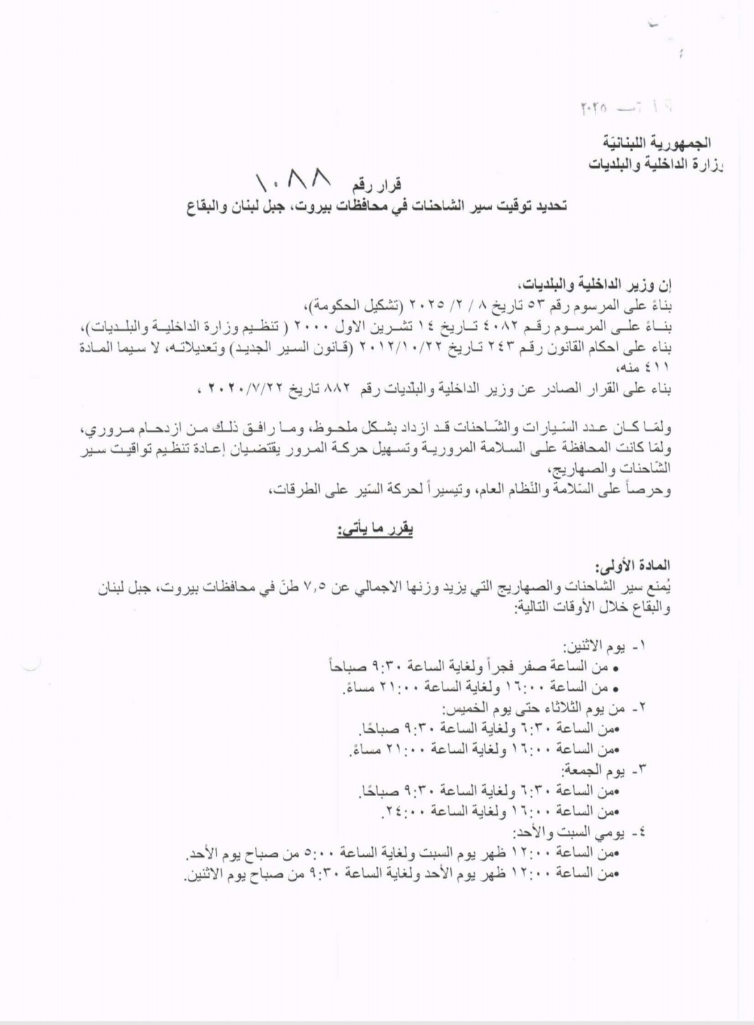 هذه اوقات سير الشاحنات كما حددتها الداخلية