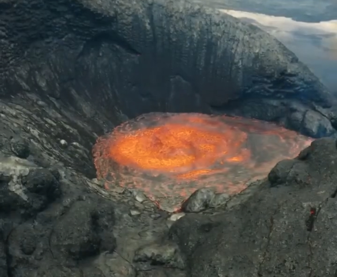 بالصوت والصورة مصور ايسلندي يصور في بلده ثورة بركان بطائرة درون ،ويسمع صوت غليان النيران بوضوح