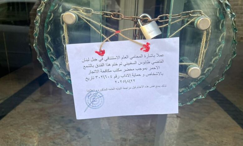 بناءً لإشارة القضاء، قام مكتب مكافحة الاتجار بالبشر وحماية الآداب بختم فندقَين في منطقة كفرحباب بالشمع الأحمر.
