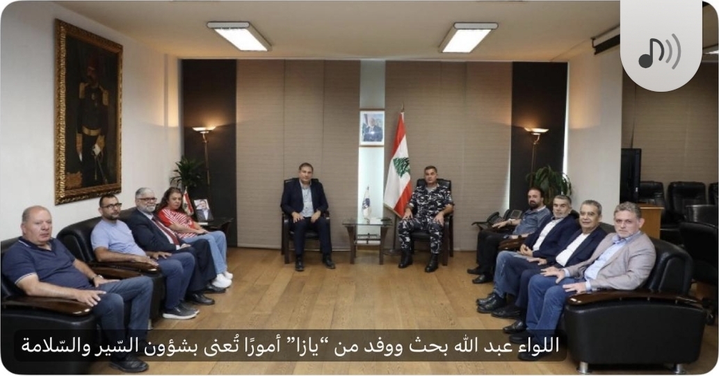 استقبل المدير العام لقوى الأمن الداخلي اللواء رائد عبد الله، ظهر اليوم 8-9-2025، في مكتبه بثكنة المقر العام، وفداً من تجمع الشباب للتوعية الاجتماعية (YASA) برئاسة زياد عقل، في زيارة عرضوا في خلالها أمورا تُعنى بشؤون السير والسلامة العامة على الطّرقات، مؤكدين أهمية تطبيق القوانين، ولا سيما قانون السير، وترسيخ مفاهيم السلامة المرورية لدى جيل الشباب.