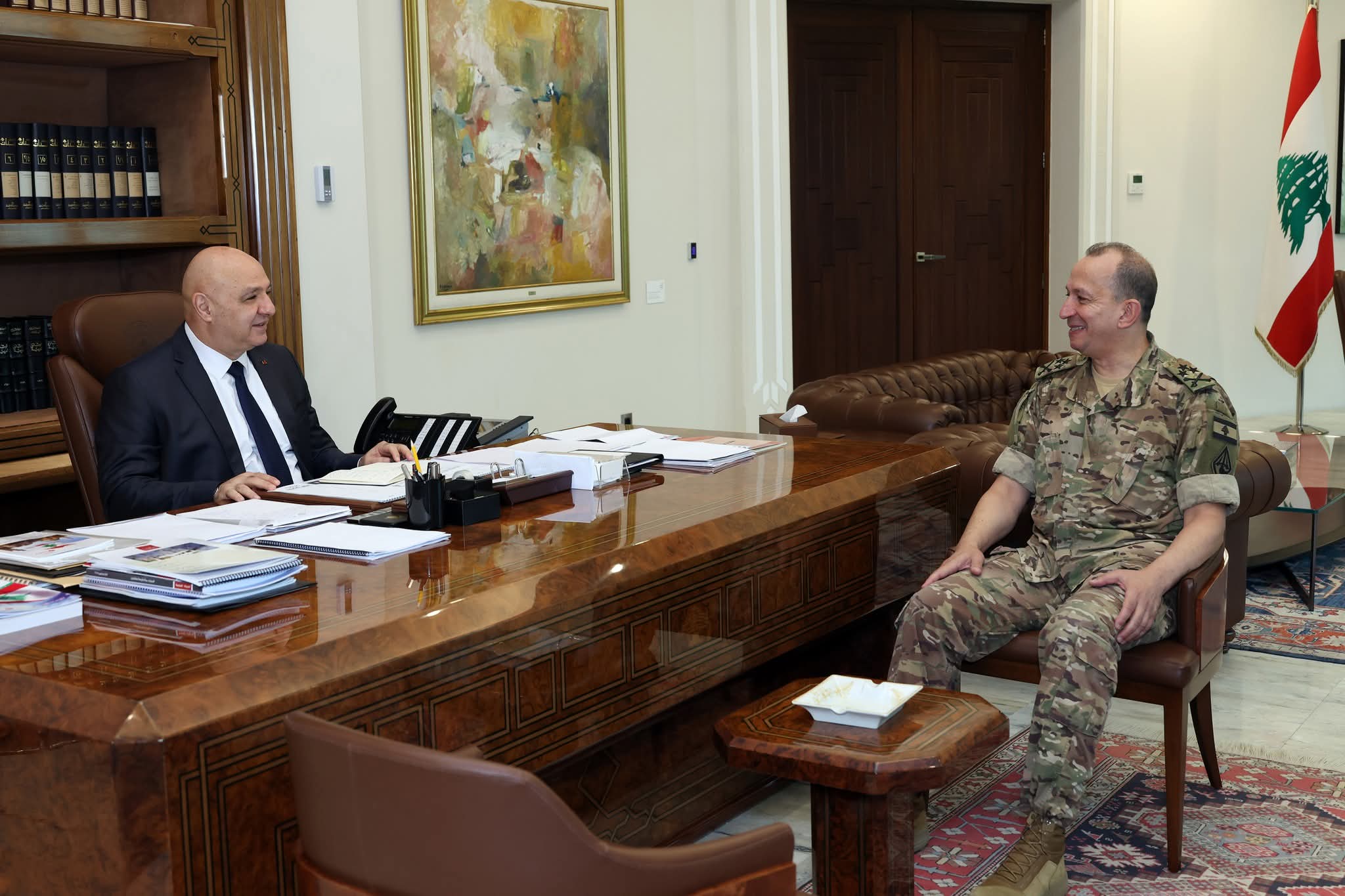 عرض رئيس الجمهورية العماد جوزاف عون مع قائد الجيش العماد رودولف هيكل الأوضاع الأمنية في البلاد، واطّلع منه على تفاصيل الاعتداءات الإسرائيلية التي استهدفت أمس عدداً من البلدات والقرى الجنوبية، كما اطّلع على ما حققه الجيش في مجال مكافحة المخدرات