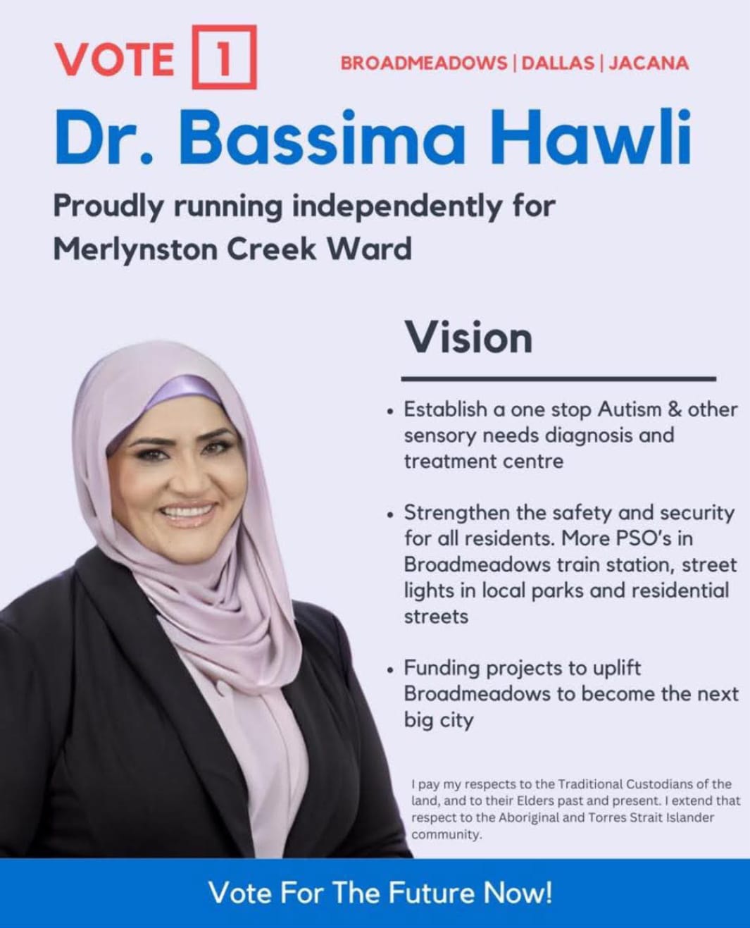 لم يكن النجاح المهني ولا الخيري نهاية الطريق، بل بدايته. قررت أن تدخل المعترك السياسي في أستراليا، فترشحت أولًا للانتخابات البلدية، ثم النيابية، واقتربت من الفوز. وها هي اليوم تتولى رئاسة Citizen Party – حزب المواطنين في ولاية فيكتوريا، لتصبح أول سيدة عربية في هذا الموقع تتولى رئاسة الحزب. إنها تجربة سياسية لم تُبعدها عن إنسانيتها، بل زادتها إصرارًا على أن تكون الصوت الصادق للجالية اللبنانية والعربية في المهجر.
