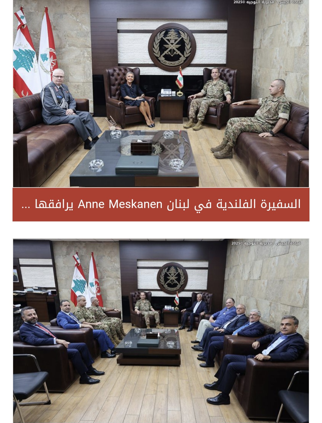استقبل قائد الجيش العماد رودولف هيكل في مكتبه في اليرزة السفيرة الأميركية في لبنان Lisa A. Johnson في زيارة وداعية، يرافقها الملحق العسكري Colonel Jason Belknap، ثم السفيرة الفلندية في لبنان Anne Meskanen يرافقها الملحق العسكري الفلندي في لبنان Lieutenant Colonel Janne Paloheimo. خلال هذَين اللقاءَين، تناول البحث الأوضاع العامة في لبنان والمنطقة.