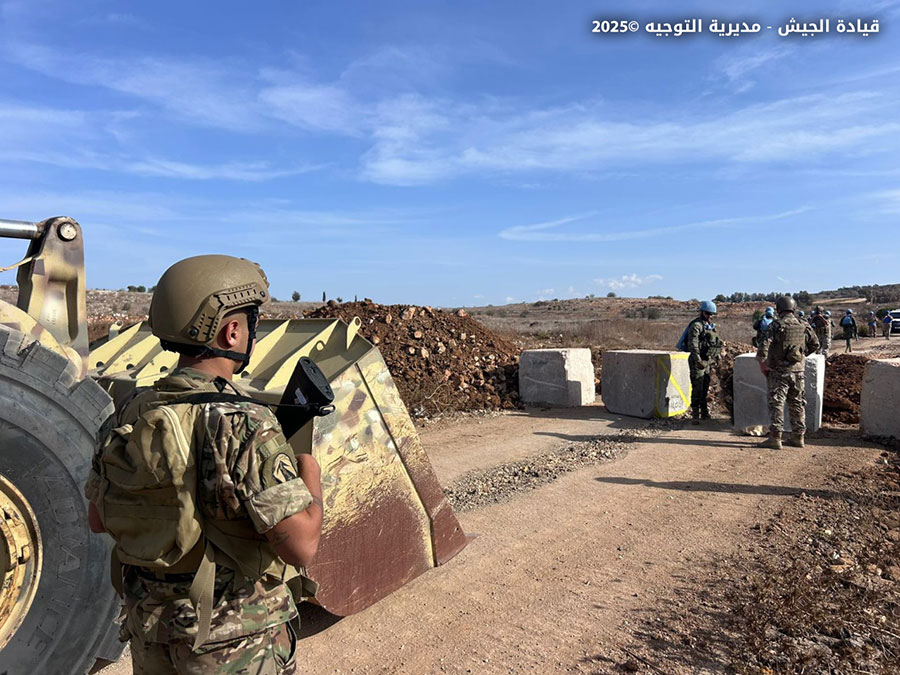 بتاريخ 20 /10 /2025 وضمن إطار متابعة الخروقات والاعتداءات الاسرائيلية المتكررة، عملت وحدة من الجيش بالتنسيق مع قوة الأمم المتحدة المؤقتة في لبنان – اليونيفيل على إزالة عدد من المكعبات الإسمنتية والسواتر الترابية التي كان العدو الإسرائيلي قد أقامها بتاريخ 19 /10 /2025 ليلاً في خراج بلدة عيترون – بنت جبيل، لقطع طريق في البلدة ومنع الأهالي من الوصول إلى أراضيهم.
