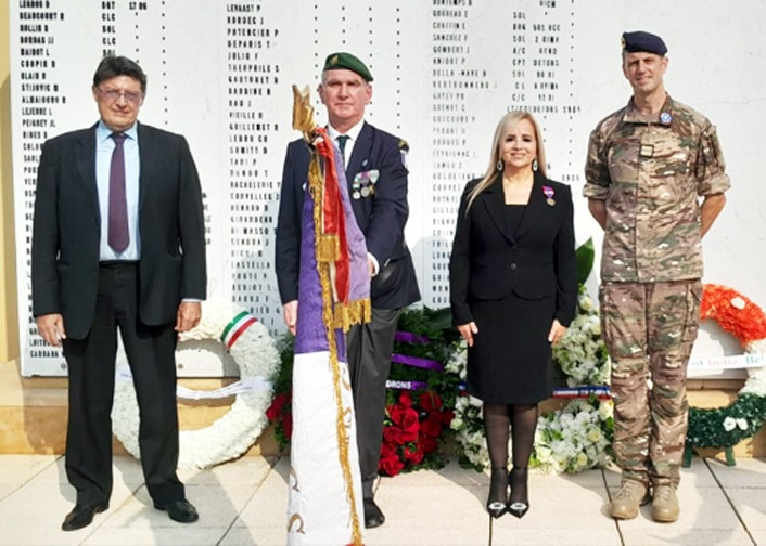 اقيم هذا الاحتفال بحضور السفير الفرنسي هيرفي ماغرو ورعايته، وممثل عن وزير الدفاع الفرنسي، وقائد القوات الفرنسية المسلحة، العاملة ضمن الـ”يونيفل” في الجنوب، الجنرال بول سانزي Général Paul Sanzey والضباط المحاربين الفرنسيين القدامى، وعدد من الضباط اللبنانيين والفرنسيين، وسفراء من الدول الاوروبية والاَسيوية. وقد جري وضع اكاليل على قبر الجندي المجهول.