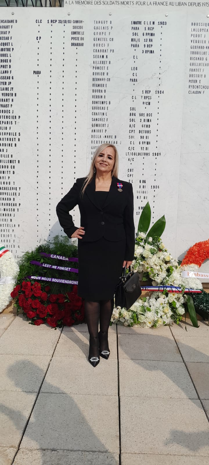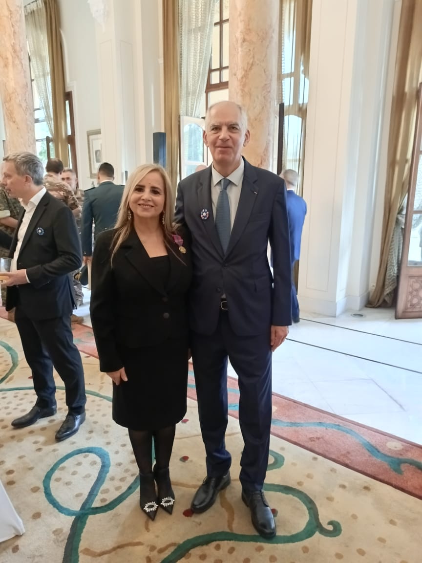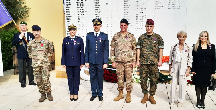 جرى الاحتفال في قصر الصنوبر، وقد قُلدت الدكتورة كلوديا شمعون ابي نادر الميدالية البرونزية باسم وزارة الدفاع الفرنسية، تقديرا لجهودها المميزة في تعليم اللغة الفرنسية وآدابها لتلامذة الضباط في الكلية الحربية، طيلة ٤٥ سنة.
