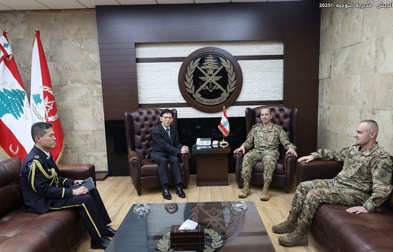 استقبل قائد الجيش العماد رودولف هيكل في مكتبه في اليرزة السفير الياباني في لبنان Magoshi Masayuki يرافقه الملحق العسكري Col. Higushi Tomonari، وتناول البحث الأوضاع العامة في لبنان والمنطقة.
