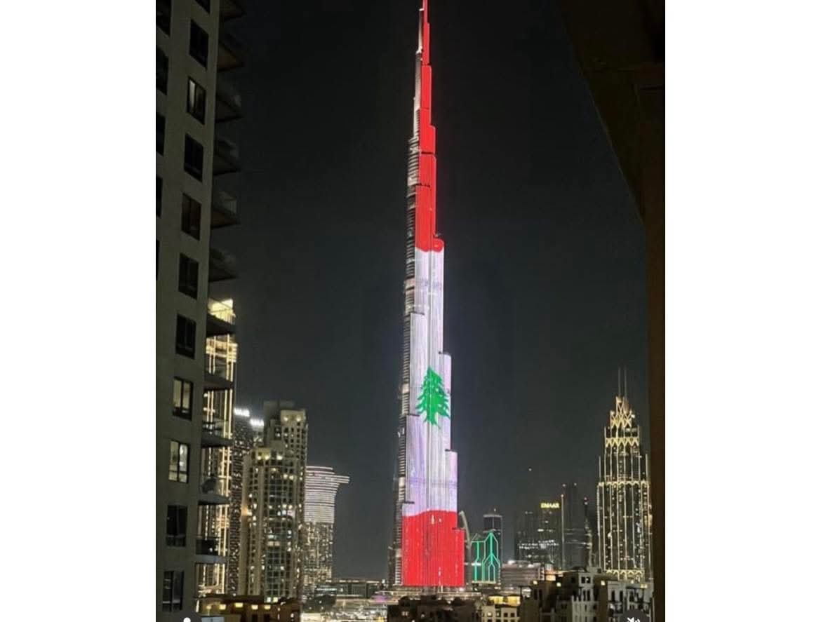 المركزية – في لفتة تضامنية مع لبنان، قامت دولة الإمارات العربية المتحدة بإضاءة برج خليفة في دبي بعلم لبنان، احتفالاً بعيد الاستقلال اللبناني الذي يصادف اليوم من كل عام. هذه المبادرة تعكس العلاقات القوية والمستدامة بين البلدين والشعبين، وتُظهر دعم الإمارات للبنان في مرحلة حرجة تمر بها البلاد.