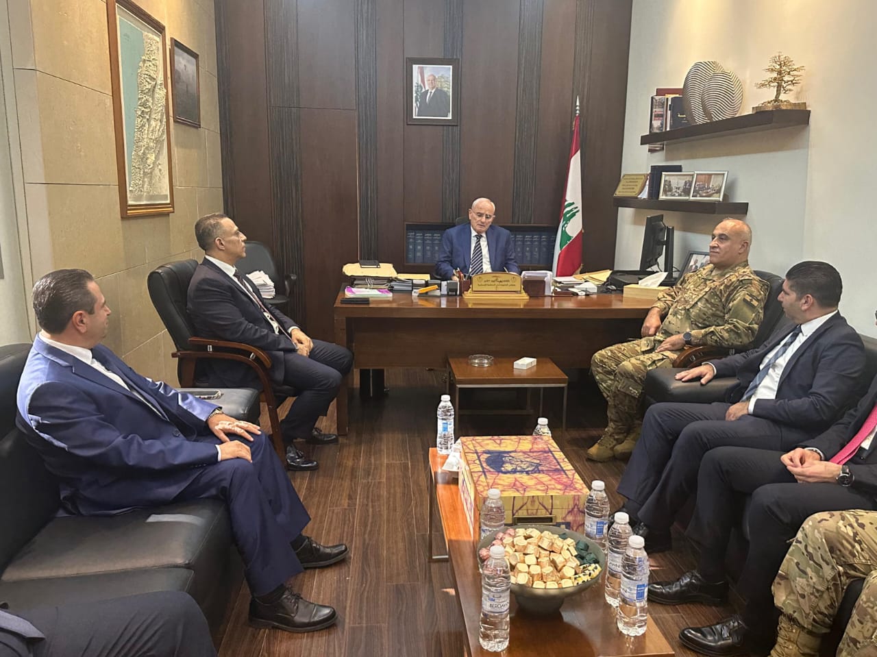 زار وزير الدفاع الوطني اللواء ميشال منسى ظهر اليوم المحكمة العسكرية، واجتمع في مكتب رئيسها العميد وسيم فياض مع قضاة المحكمة والضباط المستشارين والعاملين فيها.